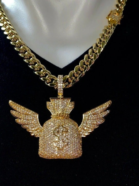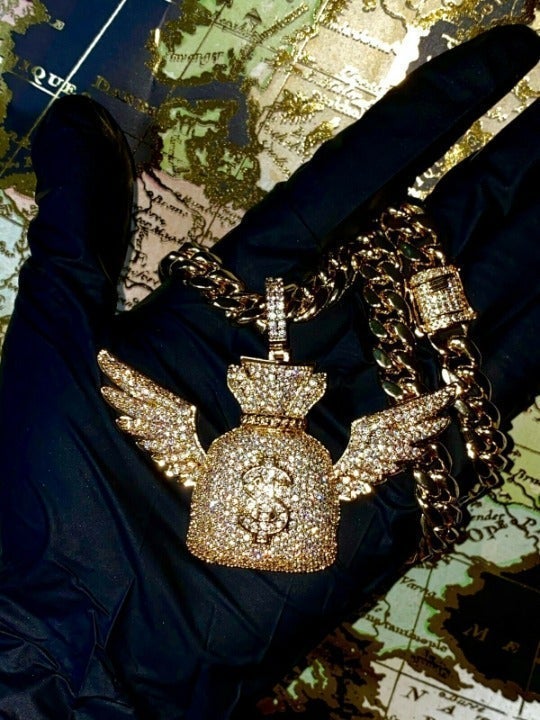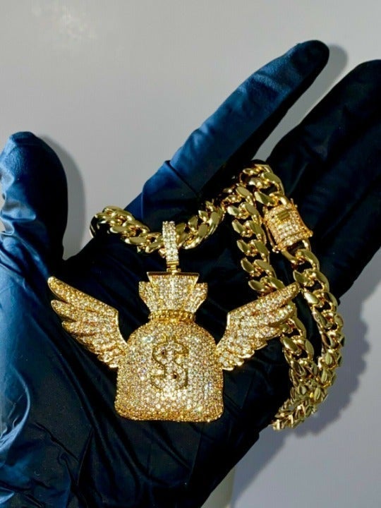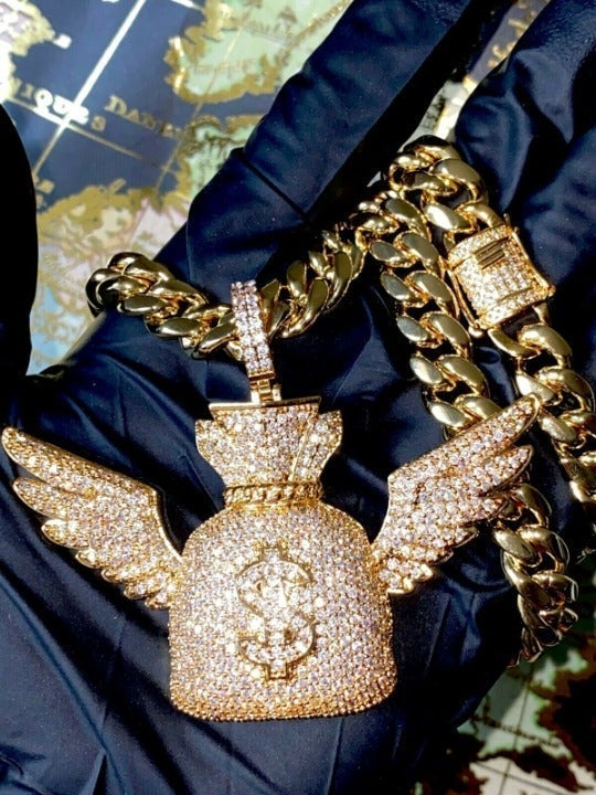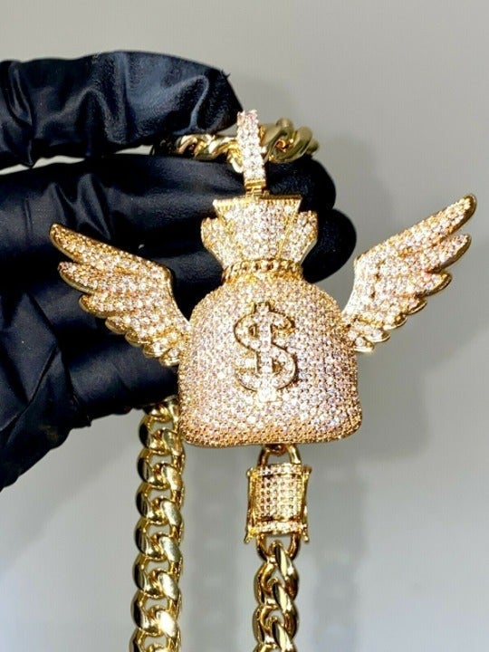 CHARMING ICED-OUT MONEY BAG PENDANT