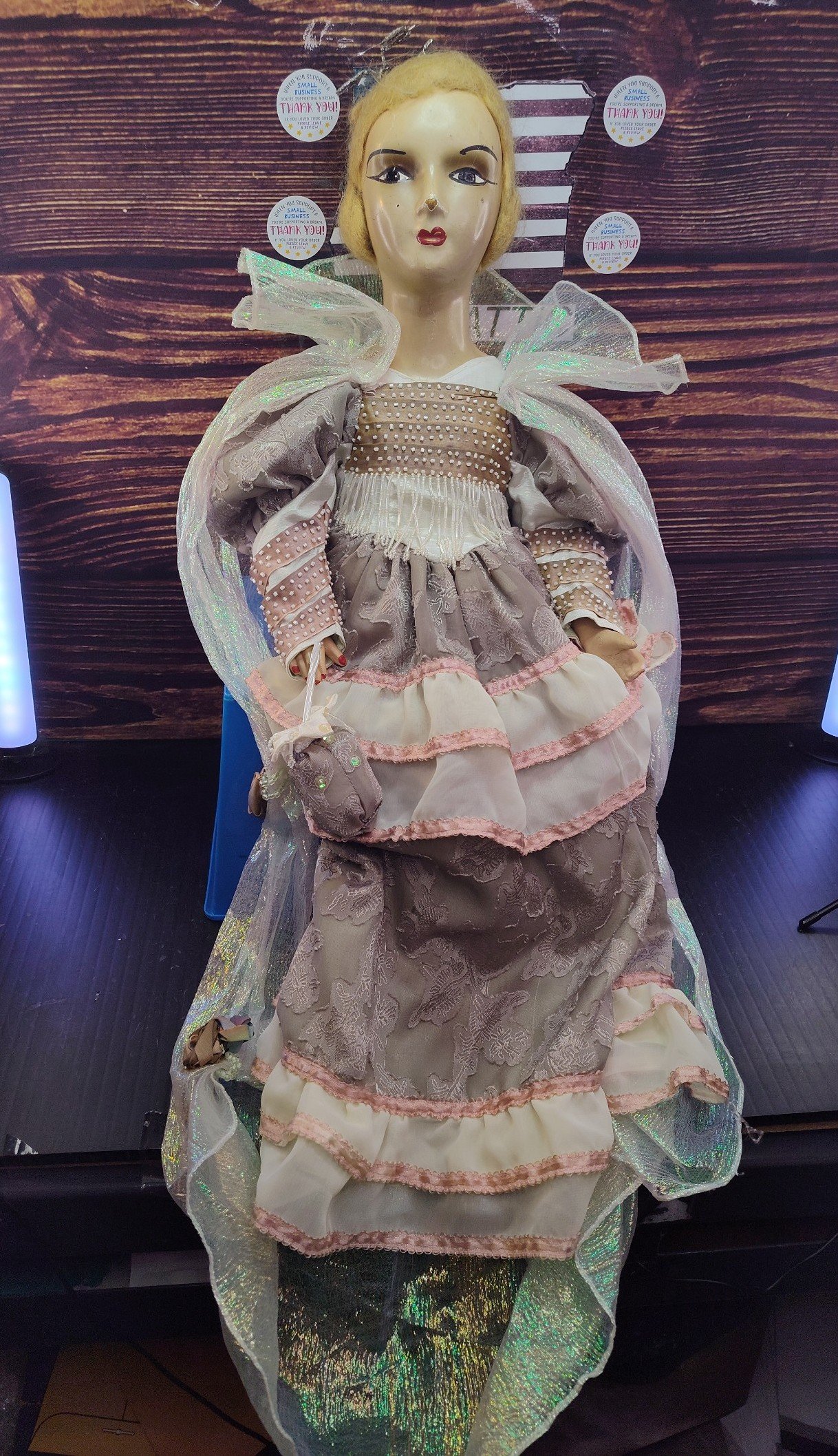 In overall good used condition is a 25-in vintage 1920s boudoir ceramic doll please inspect all available photos before any offers or purchase and if you have any other questions leave us a message here Eve's attic only on mercari thank you