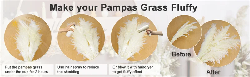 4.You can blow dry pampas on low and gentle to fluff the plumes.