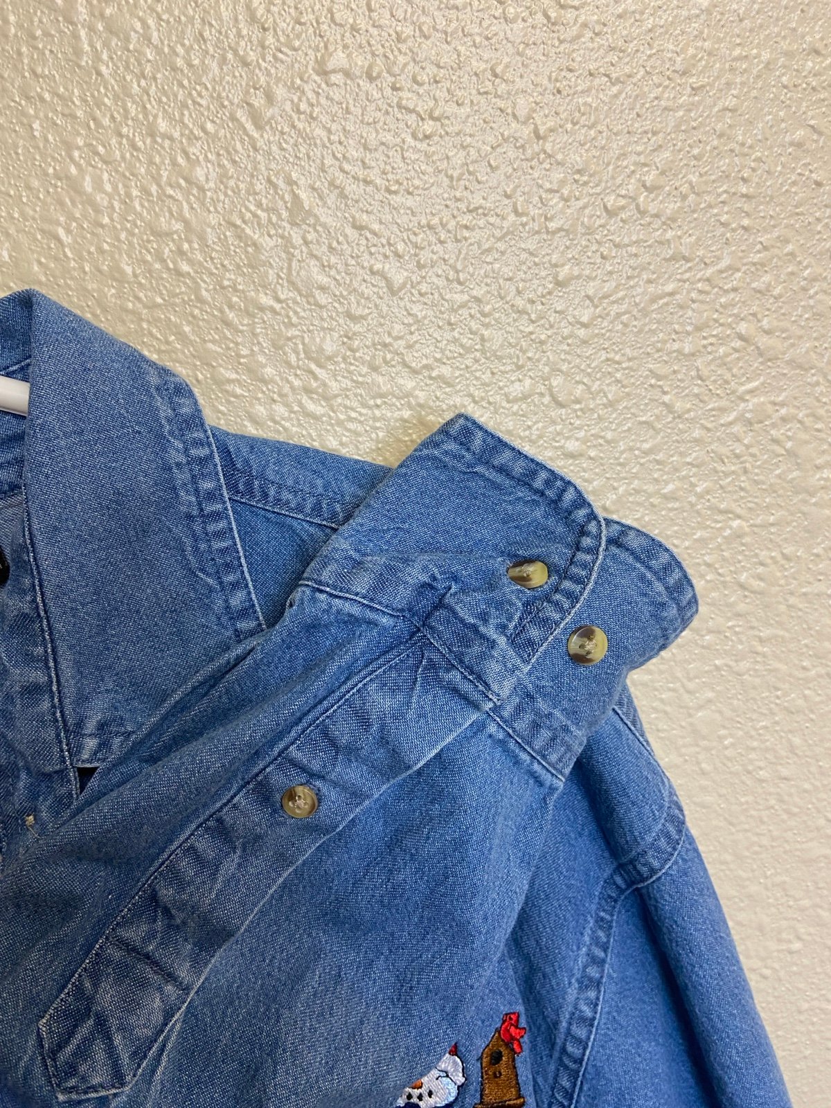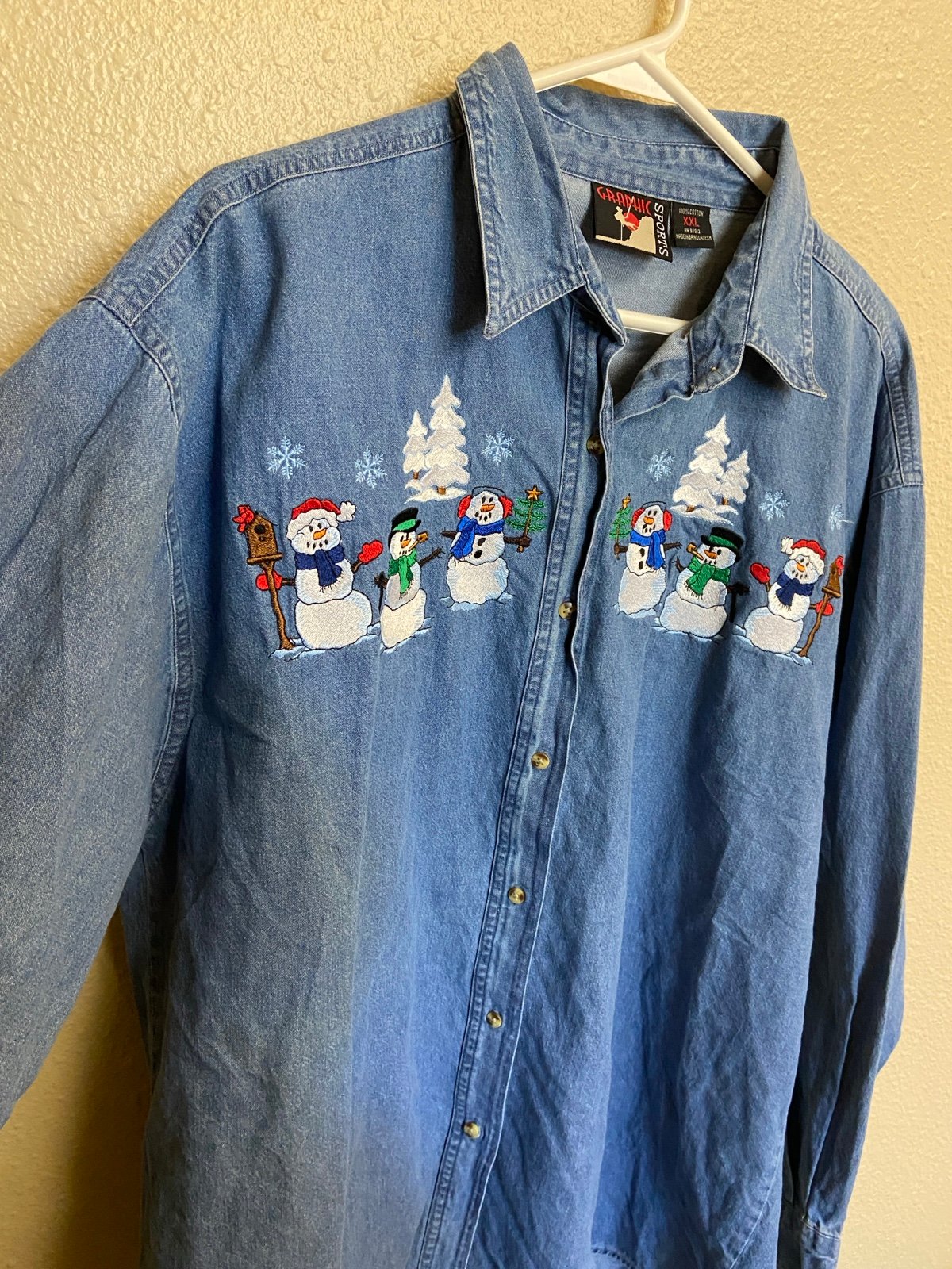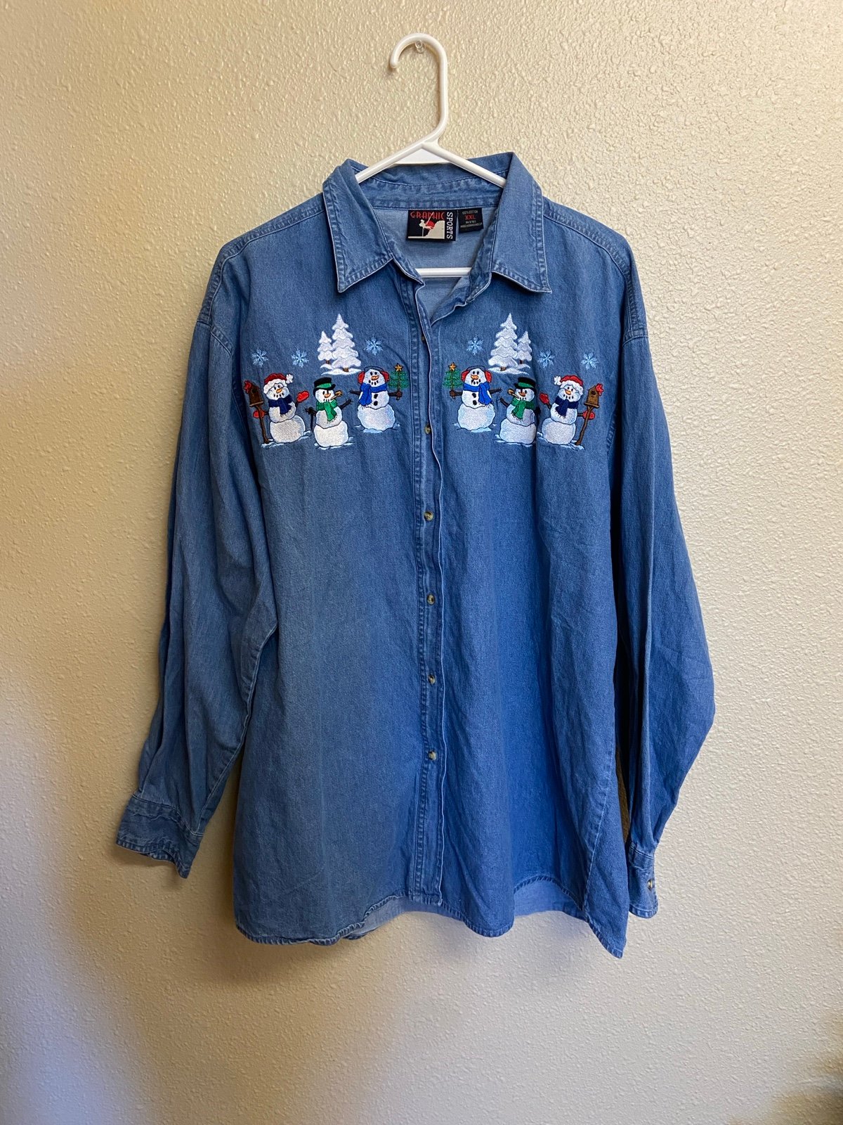 This is a super adorable 1990s denim button up embroidered Christmas shirt. Perfect for general holiday / winter wear or a fun Christmas event or party. Overall good pre-owned vintage condition, with very light wear for age. Size tag reads women’s XXL. See approx. measurements below to ensure correct fit: