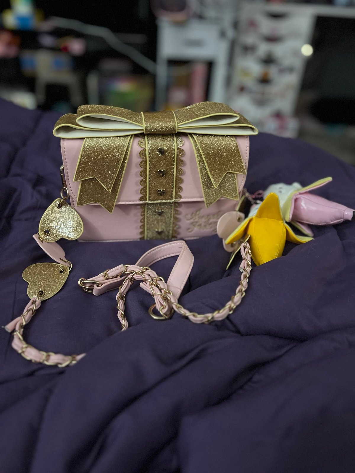 Attached are two bananya keychains. Pink and gold. The glitter is sealed, it doesn’t flake lol