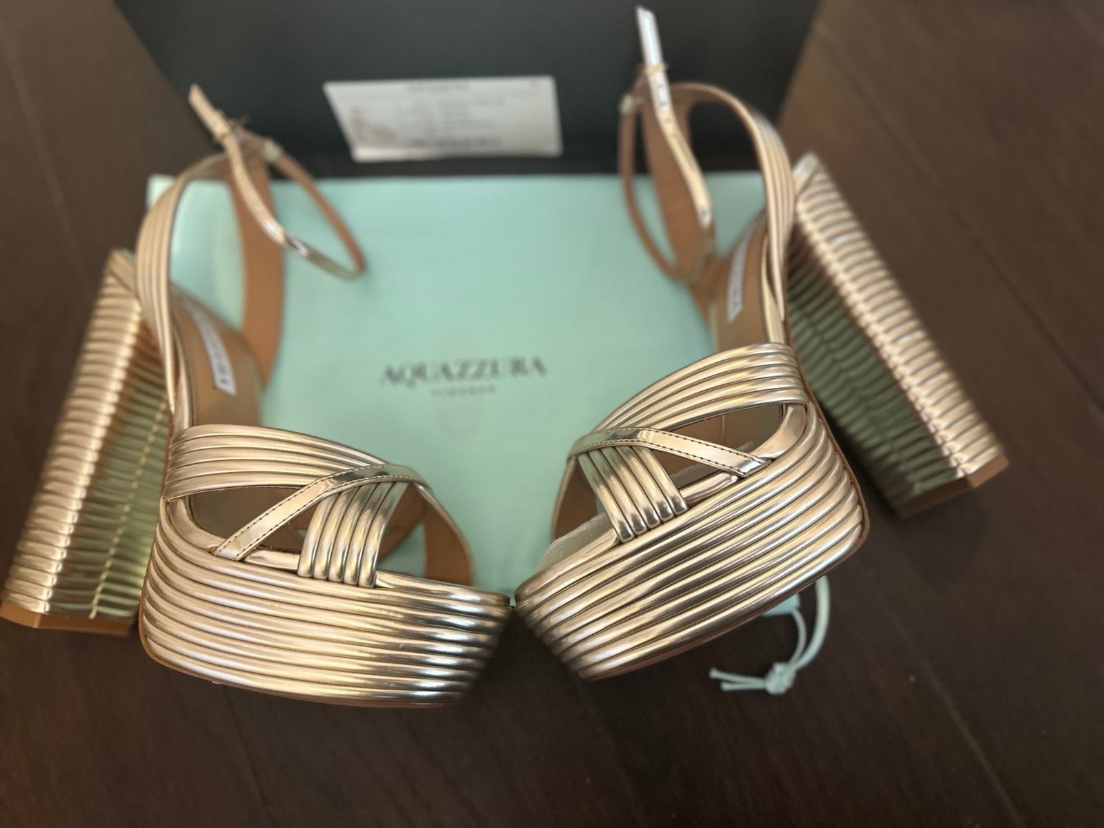 Selling these gorgeous, super comfortable, gold Aquazzura platforms. Received as a gift and I need a different size. Never worn, new in box.
