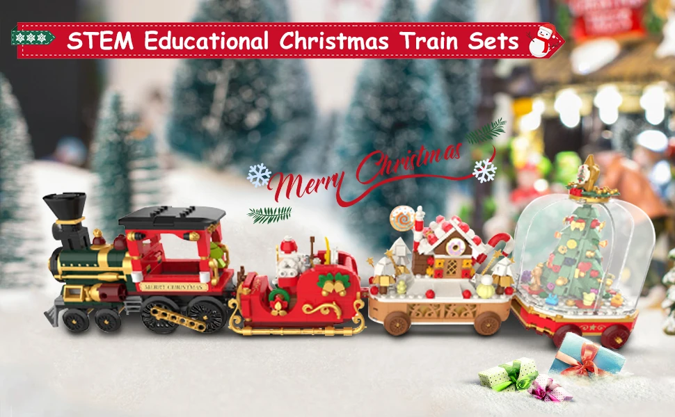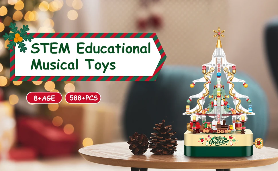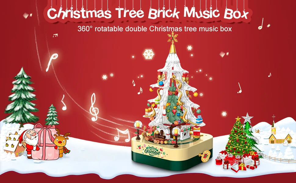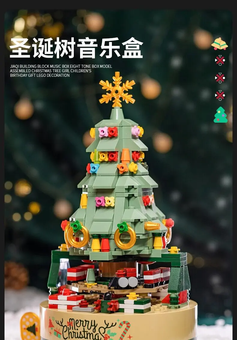 Product:Christmas Tree Music Box,Christmas Train Building Block Set