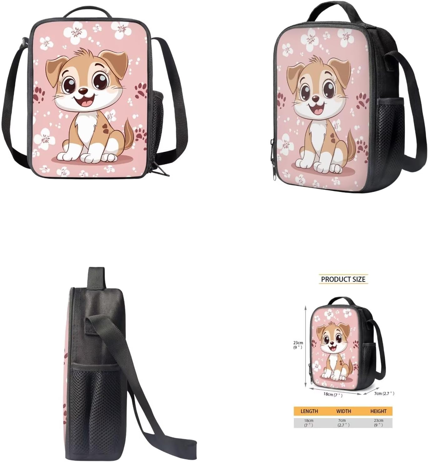 This schoolbags set for elementary and middle school students includes lightweight bookbag + lunch boxes + pencil case + water cup holder, made of high quality polyester, soft and comfortable, washable, colorfast, multiple washes still keep the original color pattern, perfect for the first day of school, sports, travel, hiking, road camping, rock climbing, summer camp, beach and other outdoor activities. There are a variety of cute and cool patterns for you to choose, also support personalization, perfect for boys and girls over 3 years old and 36 months old, perfect birthday, back to school, Christmas and New Year gift for your kids, friends or yourself, make your kids stand out in the crowd. This 11x5.1x17.3 in casual daypack features a zipper closure style with 17 in of large capacity storage for Ipad, clothes, books and other school supplies. The kids lunch carrier measures 7x2.7x9 in, insulated lining keeps food fresh and warm for up to 6 hours, easy to wipe down, and is designed with adjustable shoulder straps for free choice of length according to your child's height. Portable pen pouch measures 8.2x1.5x3.9 in with zipper and compact size to fit neatly in your backpack while keeping your supplies organized and easily accessible. The water cup holder measures 3.74x10.24 in, it can protect the water cup well and make it more fashionable and beautiful, bring different visual experience.