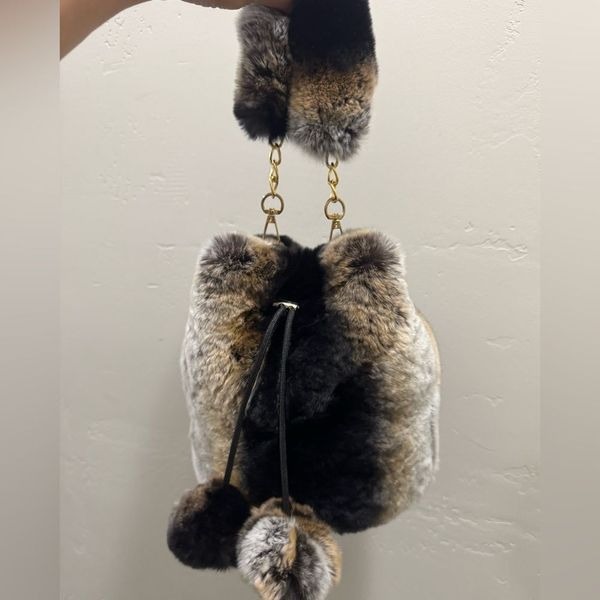 Only one available. This cute fur bucket bag is handmade from dyed genuine Rex rabbit fur, unique 3 tone gradient. Includes a removable Rabbit fur handle, and 2 additional straps. Use in multi ways, can be used as a wristlet, crossbody or shoulder bag. Spacious enough for your phones, wallet, cosmetics, compact umbrella, other items. It's perfect for casual wear, or a gift for an important someone.