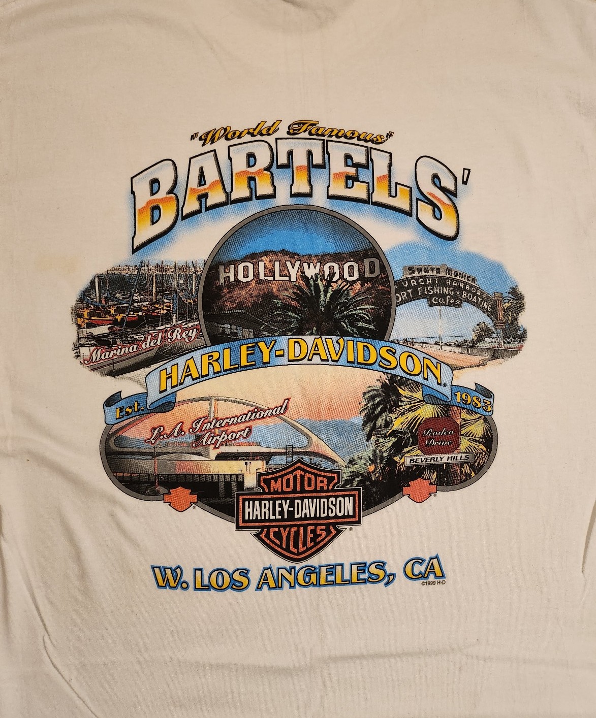 Authentic vintage 1999 Harley-Davidson t-shirt from the iconic Bartels' dealership in West Los Angeles, California.