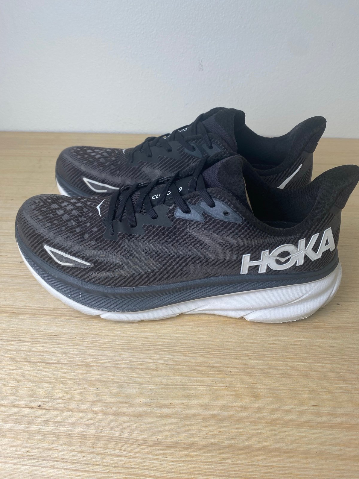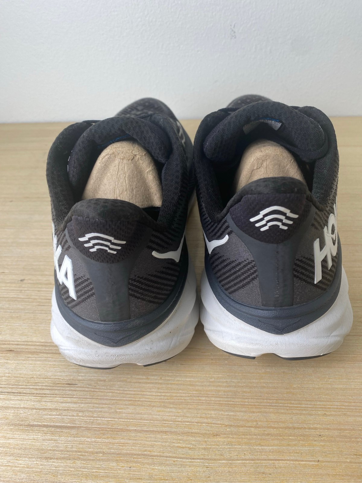 These sneakers are black with a sleek, lightweight design ideal for daily runs or all-day comfort. Shows normal signs of wear, mainly on the soles and slight creasing, but still in great shape with plenty of life left. Comes in original box