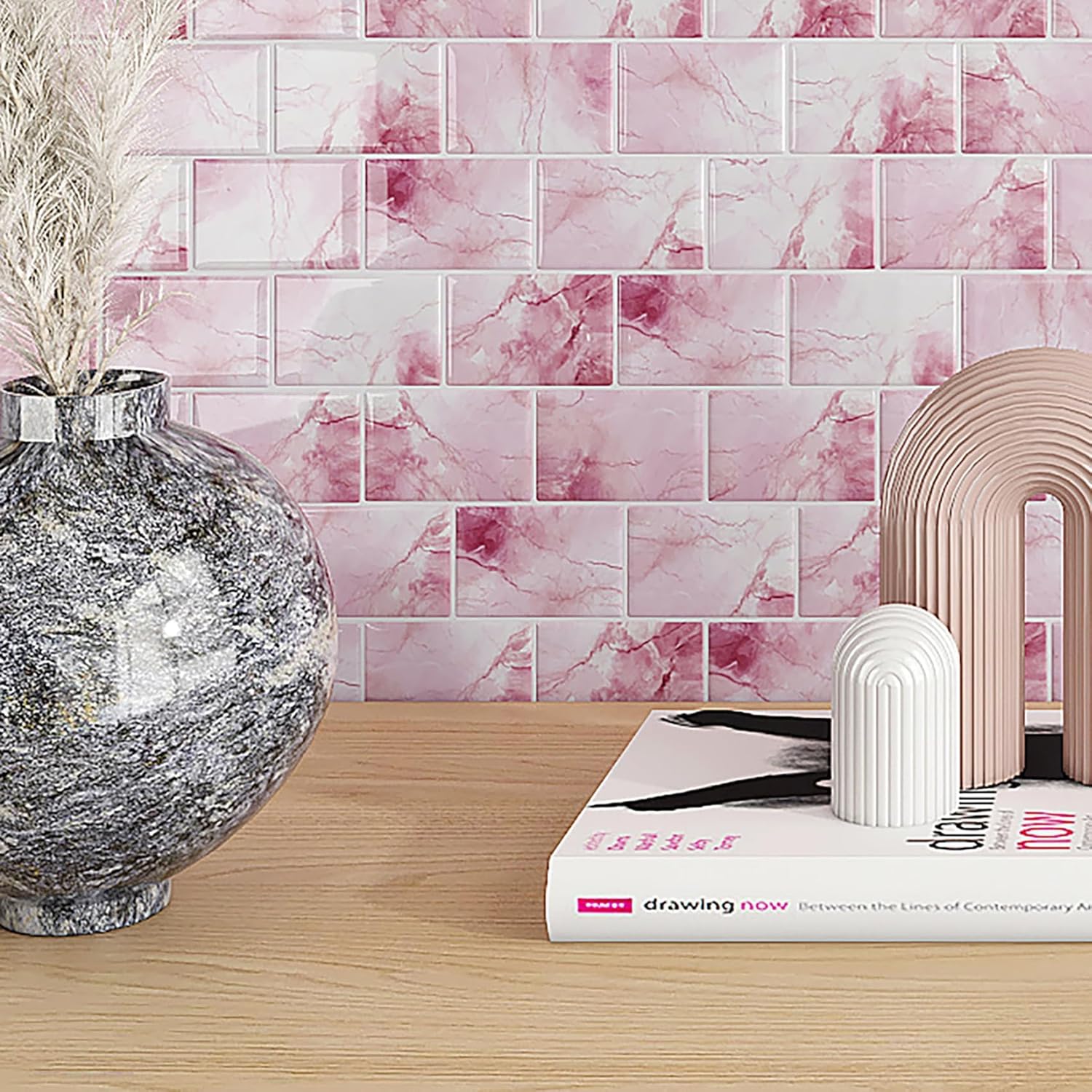 | Form Factor | Pink peel and stick backsplash |
