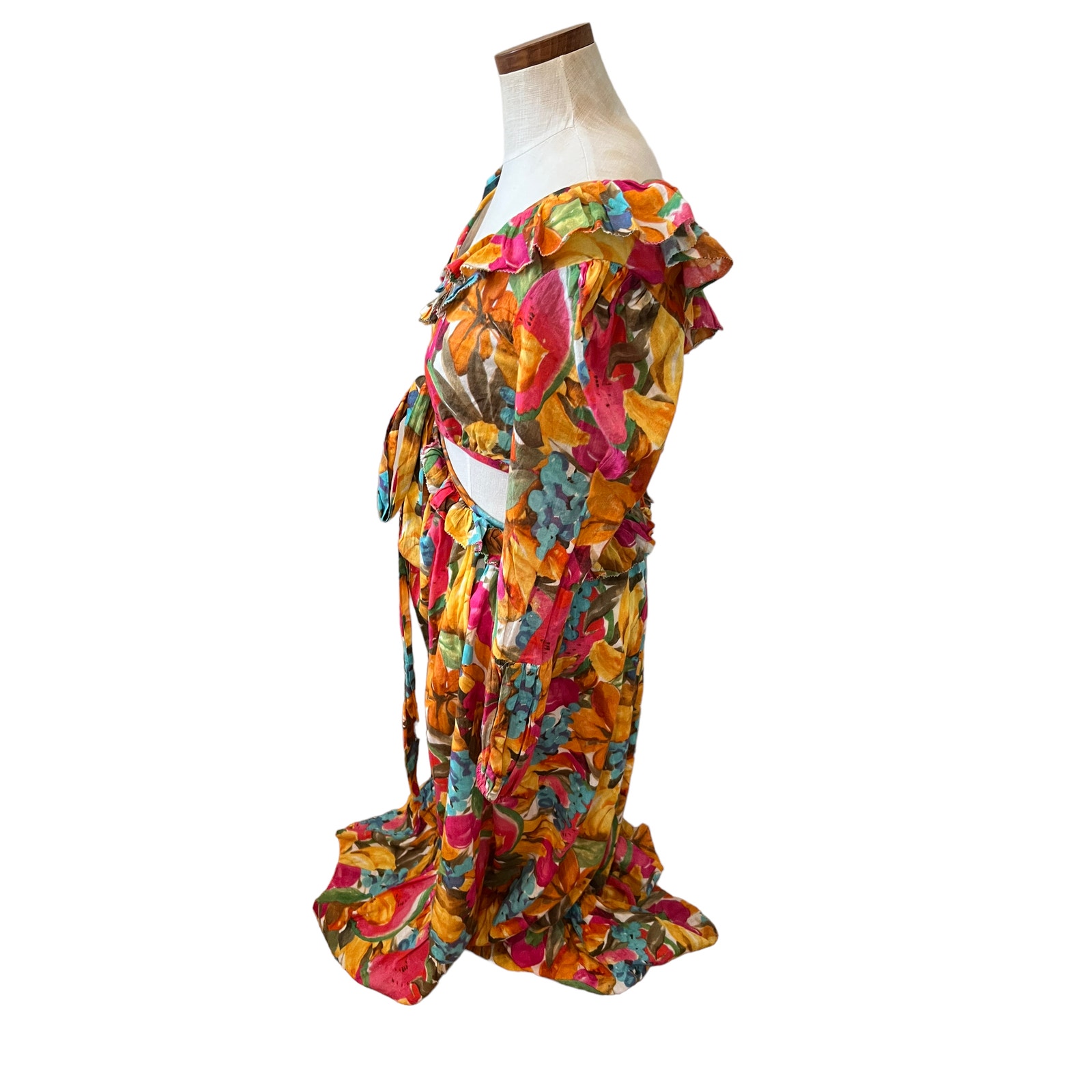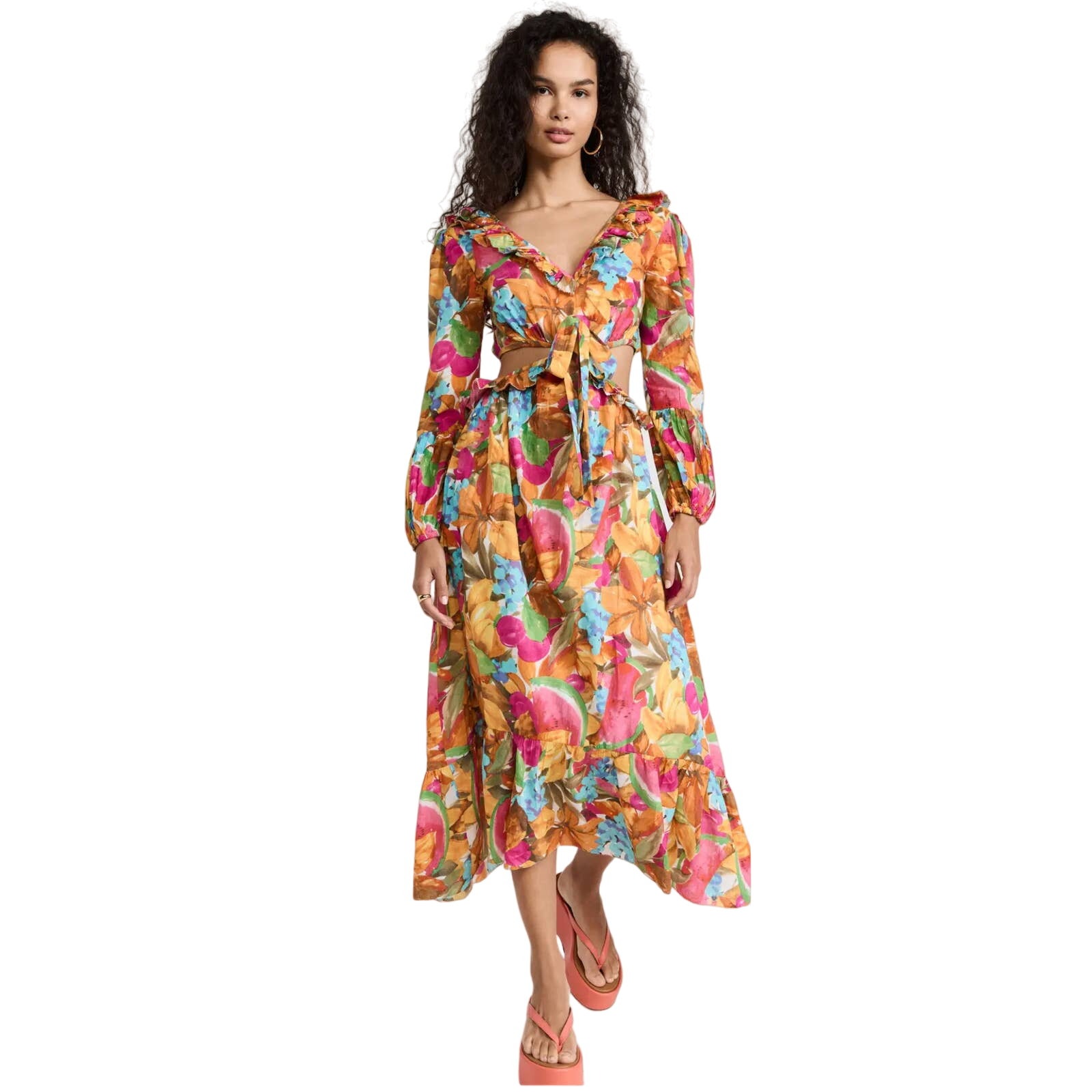 New Love the Label Boho Veronica Floral Print cut out Long Sleeve Maxi Dress in Juicy Print, size S. 100% lightweight cotton, beautiful feminine dress with long sleeves. and sexy waist cut out detail, tiered flowy skirt. Fantastic Summer Dress! Perfect for the beach, vacation, dinner, night out or a date.