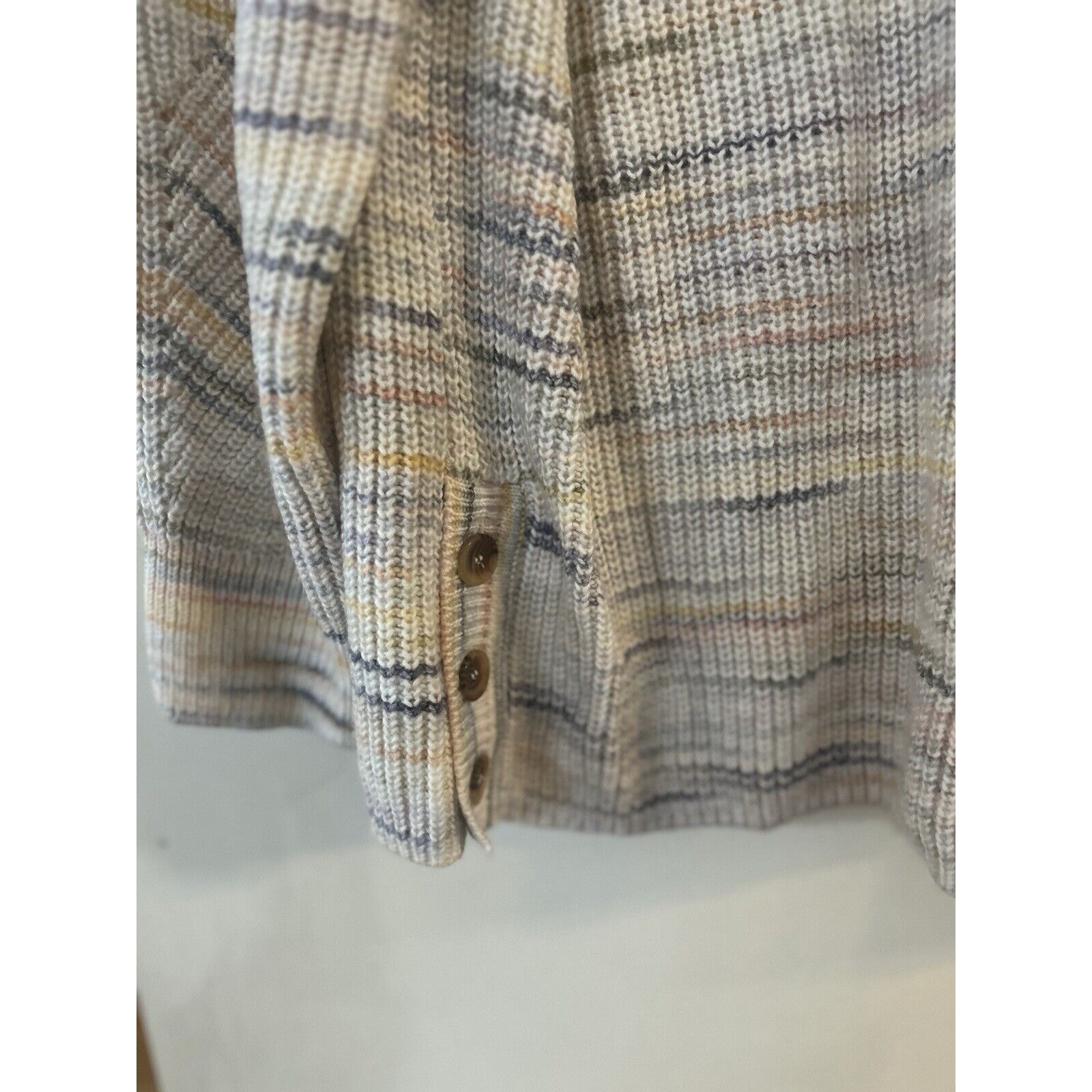 Cream colored base with colorful muted stripes