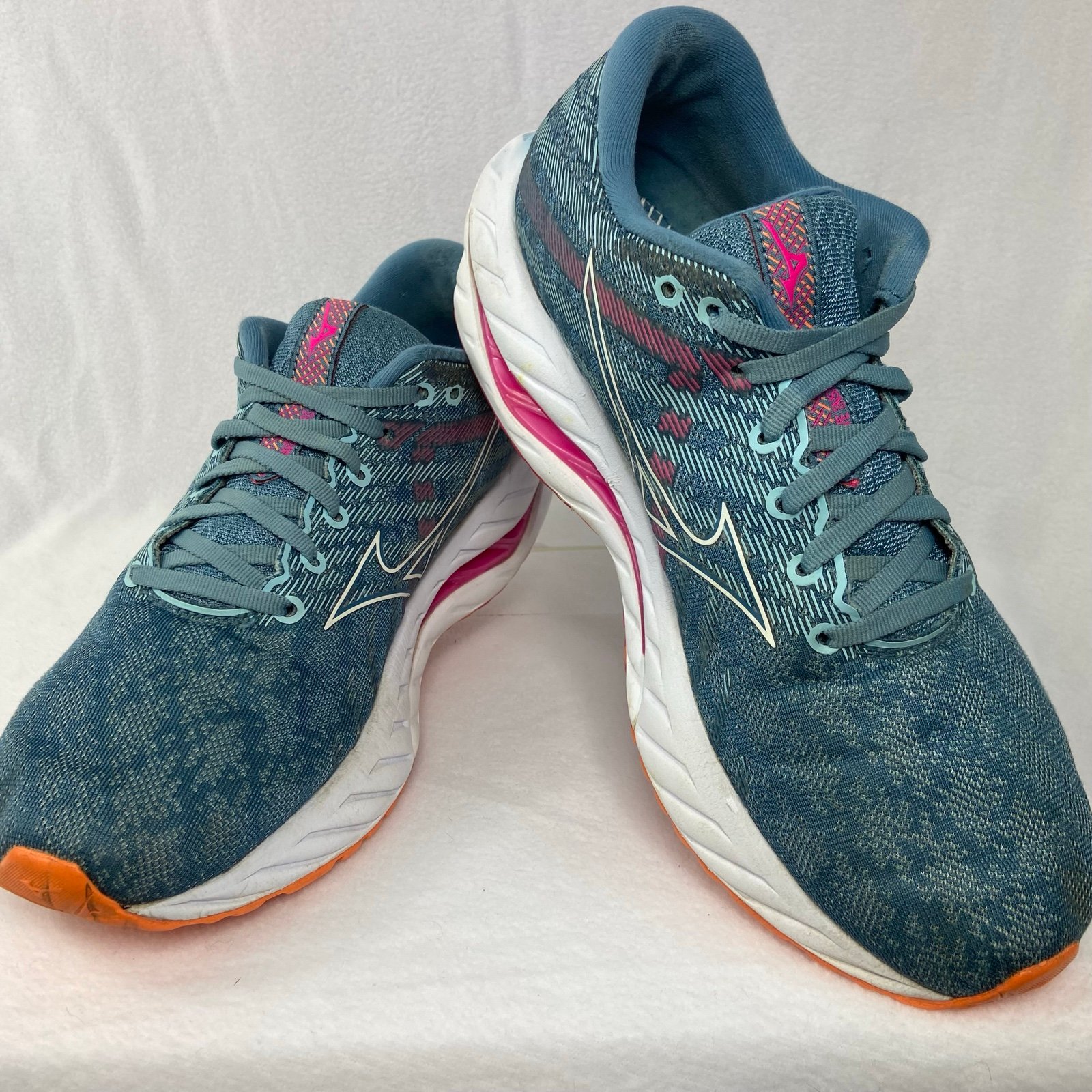 For everyone from beginner runners to runners training for marathons who need shoes for jogs. The enhanced shape of the MIZUNO WAVE offers even better stability, with an anatomical plate shape that follows the shape of the foot. The blue color with orange and pink accents adds a pop of color to your workout attire, while the sleek design makes them a fashionable choice for everyday wear.