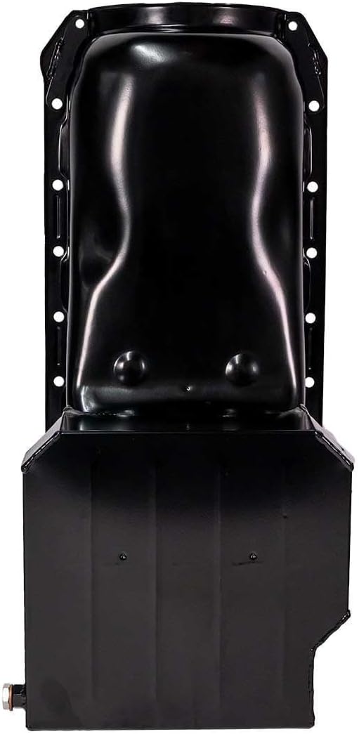 8 inch Oil Pan with Screen for Chevy Big-Block Engines features a kicked out sump oil pan. It is a 6 quart and has a wet sump with a depth of 8 inches. It has trap door baffling. It includes a magnetic drain plug. It fits a Chevy big block and has clear zinc steel.