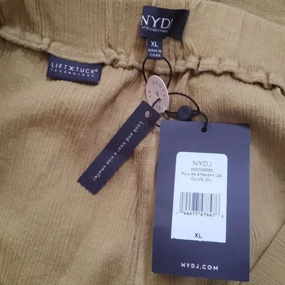 NYDJ Pull On Straight Leg Crinkled Gauze Pants Size XL Olive OilNew with tag NWT Excellent condition Elastic waist Pull onLightweight, airy, comfortable, relaxed fitGreat for summer, spring, fall weatherWaist across- 19 inches Inseam - 28.5 inches Rise - 13 inches Leg opening around- 25 inches Pet-free smoke-free home Ships same day or next day Experienced sellerIkbag5(pme)