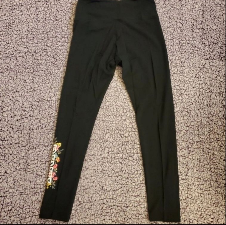 Secret Pure Black & Floral Leggings With Matching Triumph White & Floral Long Sleeve Crew Fit Tee Shirt Both Size Large Set
