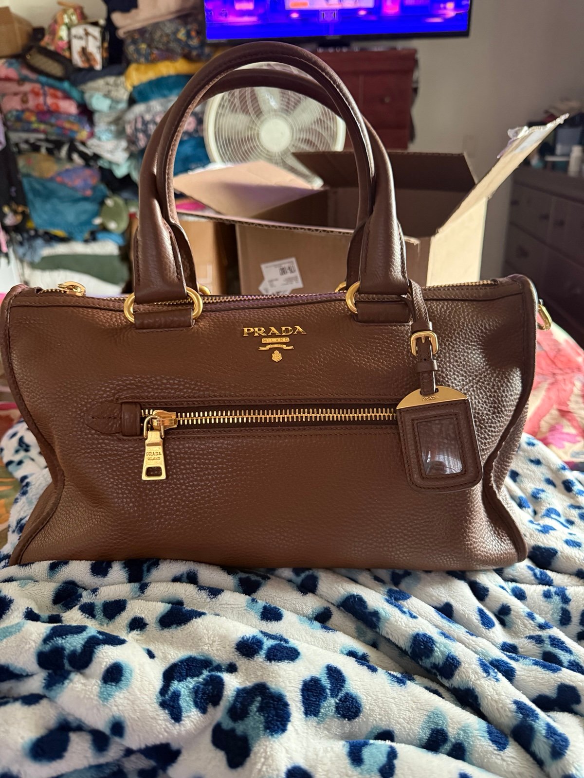 This does not have the shoulder strap i could not find it /already reduced ! This is great condition the only call out is a quarter size ink stain inside the bag on the last photo
