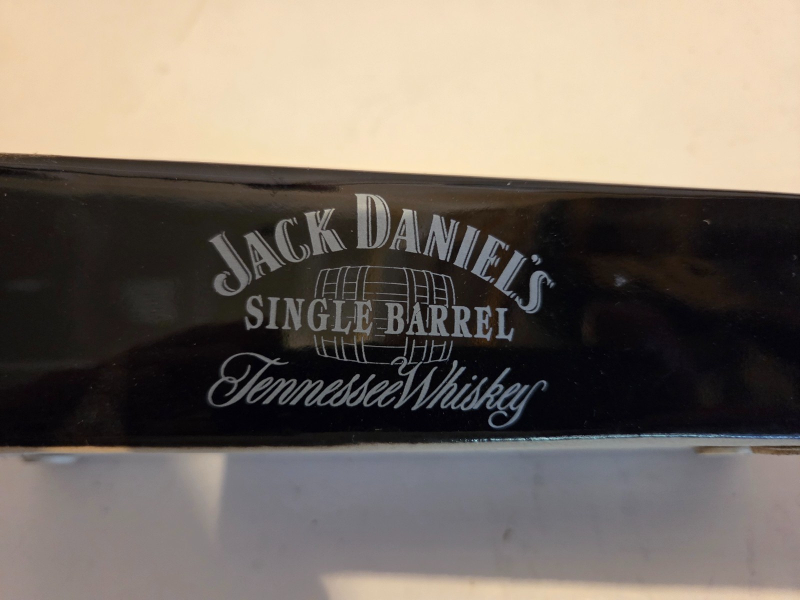 Vintage rare Jack Daniel's Single Barrel cigar ashtray from the 1960s, featuring the iconic Jack Daniel's brand logo and colors. This original collectible piece is a one-of-a-kind item that showcases the distillery's history and theme. The ashtray likely holds sentimental value for collectors of Jack Daniel's memorabilia and adds a touch of vintage charm to any collection or display.