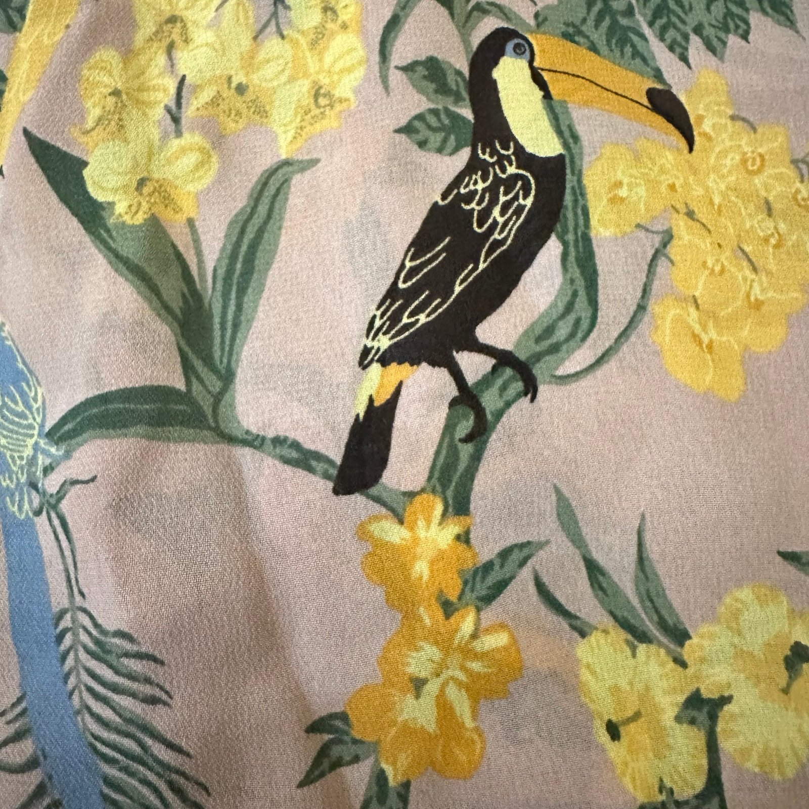 Tropical parrot and floral print in conga blush