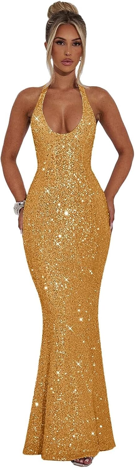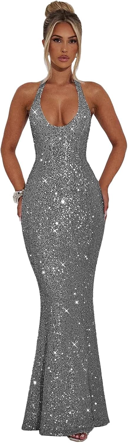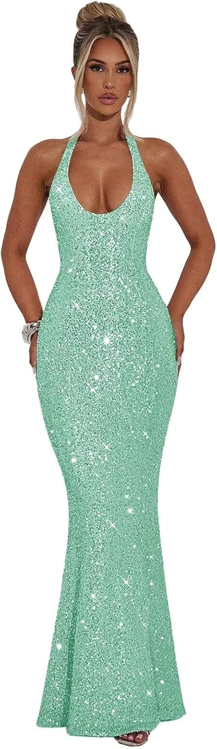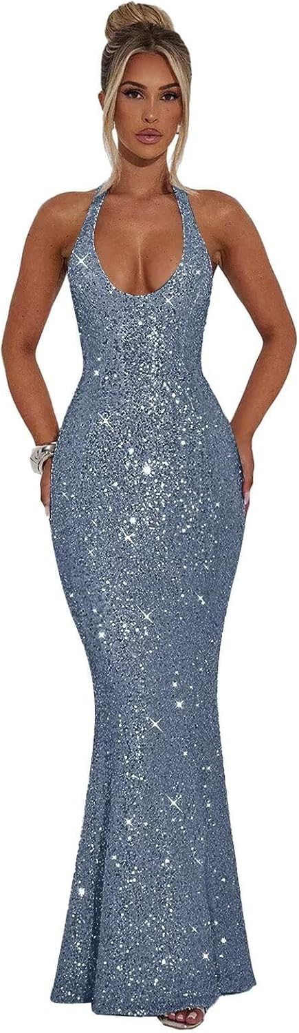 | Fabric Type | Sparkly Sequin Prom Dresses for Women Long Halter Mermaid Formal Evening Gown |