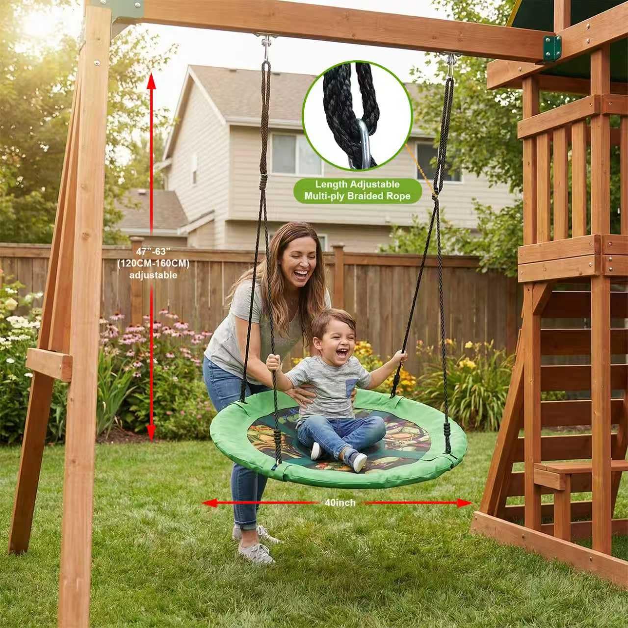 This 40-inch flying saucer tree swing brings excitement and adventure to any outdoor space. Designed with a generous circular platform, it provides plenty of room for kids to swing solo or share the fun with friends. The impressive 900-pound weight capacity ensures durability and allows multiple children to enjoy it simultaneously, making it perfect for playdates and family gatherings. Constructed with sturdy materials, this outdoor swing set is built to withstand regular use in playgrounds, backyards, and parks. The adjustable hanging straps make installation simple and allow you to customize the height to suit different ages and preferences. The vibrant red color adds a pop of excitement to your outdoor play area while remaining visible for easy supervision. Whether it's spinning, swinging, or lounging, this flying saucer swing offers versatile play options that encourage outdoor activity and imaginative play. It makes an excellent gift for kids who love outdoor adventures and provides hours of entertainment throughout the seasons.