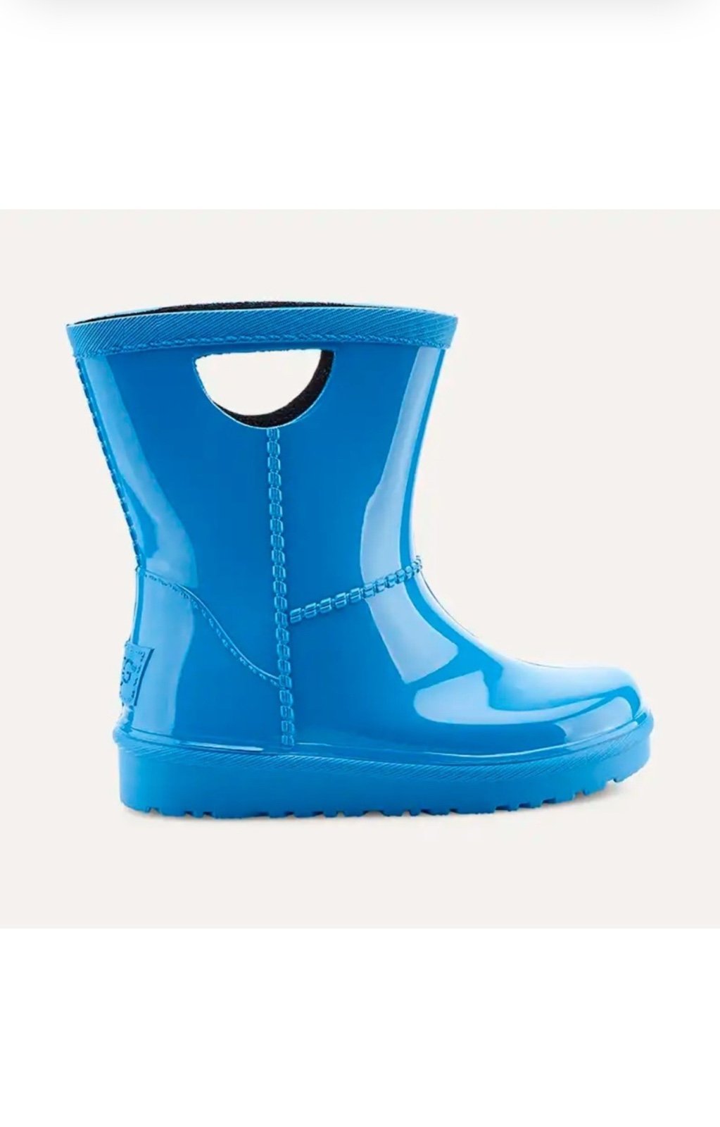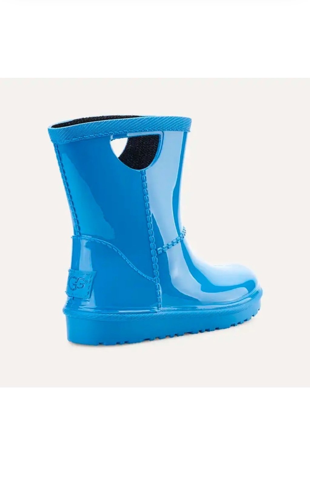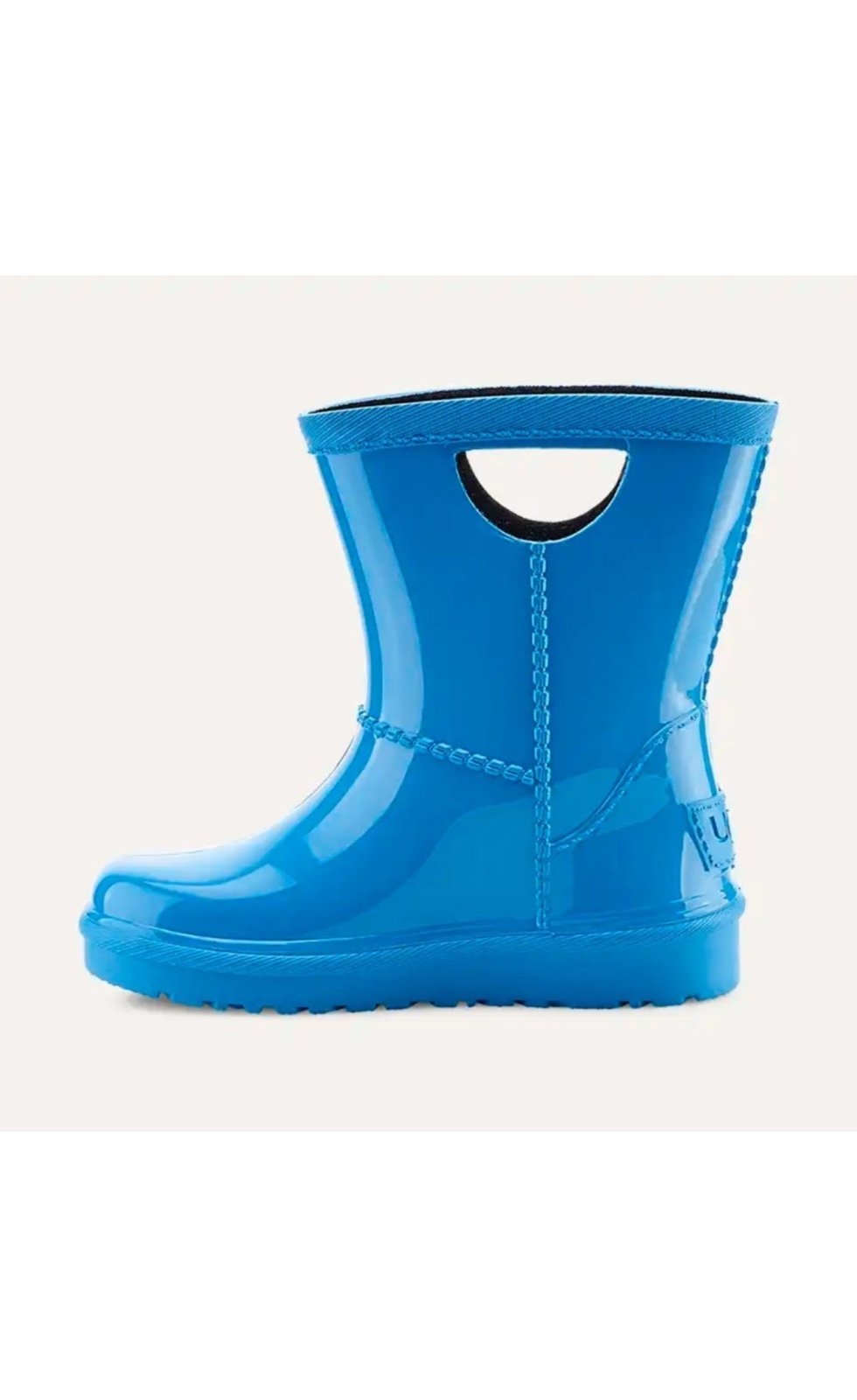 Step into comfort and style with the UGG Toddler RahJee Rain Boot, designed to keep your little one's feet dry and cozy. Crafted with high-quality jersey knit and featuring a versatile blue hue, these mid-calf rain boots are a practical choice for active toddlers. The easy pull-on design makes dressing quick and hassle-free, perfect for the bustling life of little adventurers. With a flat heel for steady footing and a comfortable fabric insole, these boots are made for walking and exploring. The waterproof construction ensures durability and ease of maintenance, while the standard shoe width accommodates growing feet. Whether it's a rainy day or a muddy playground, these UGG Classic rain boots are a reliable companion for your child's outdoor escapades. 5' Shaft.