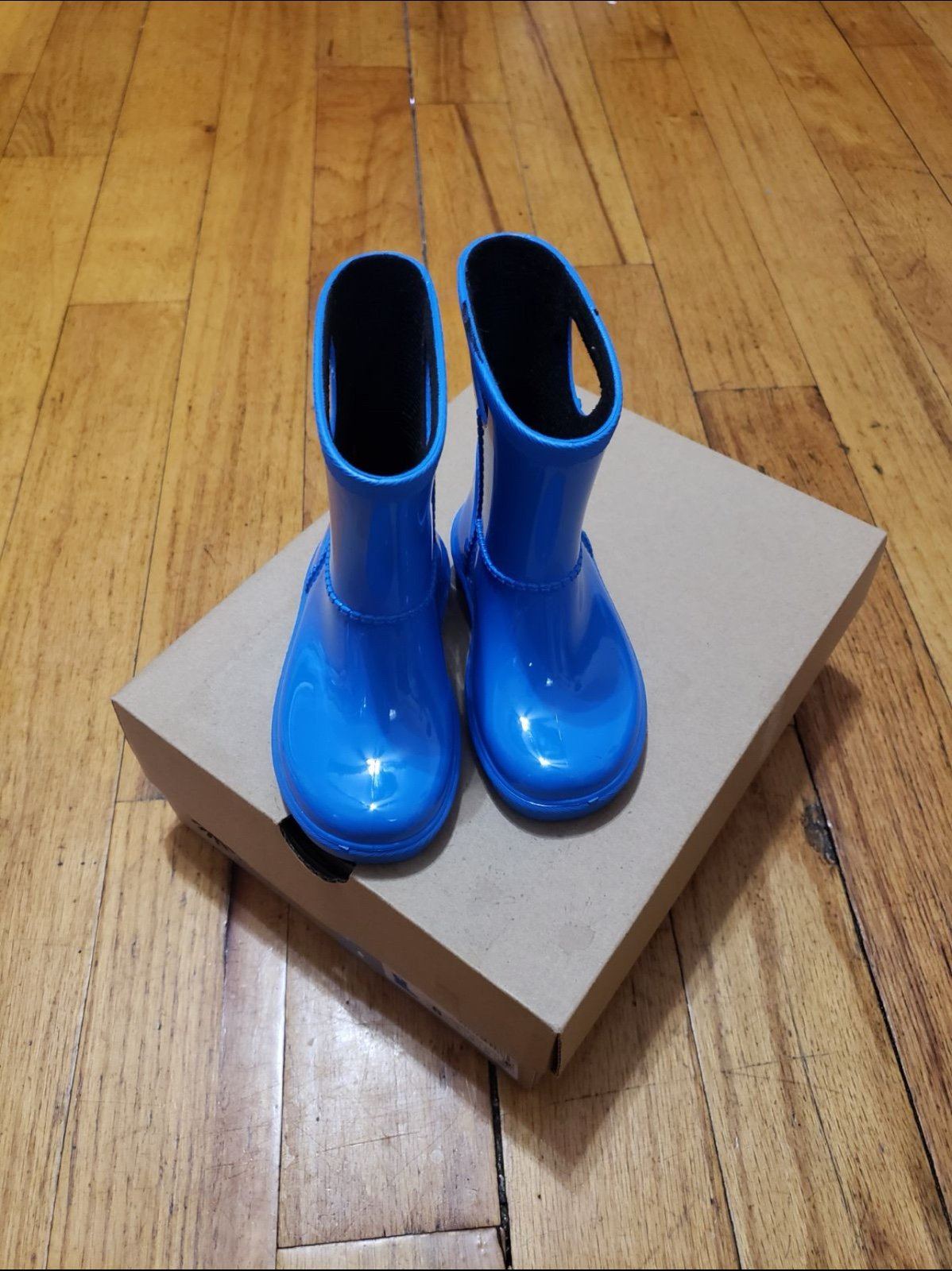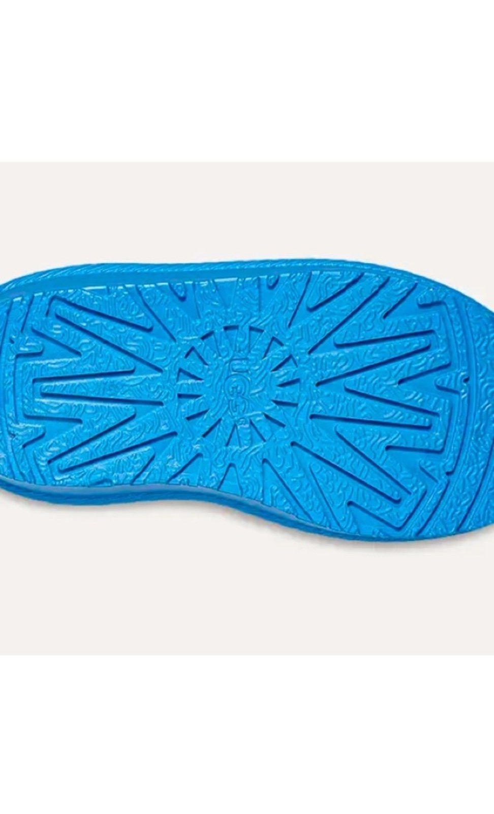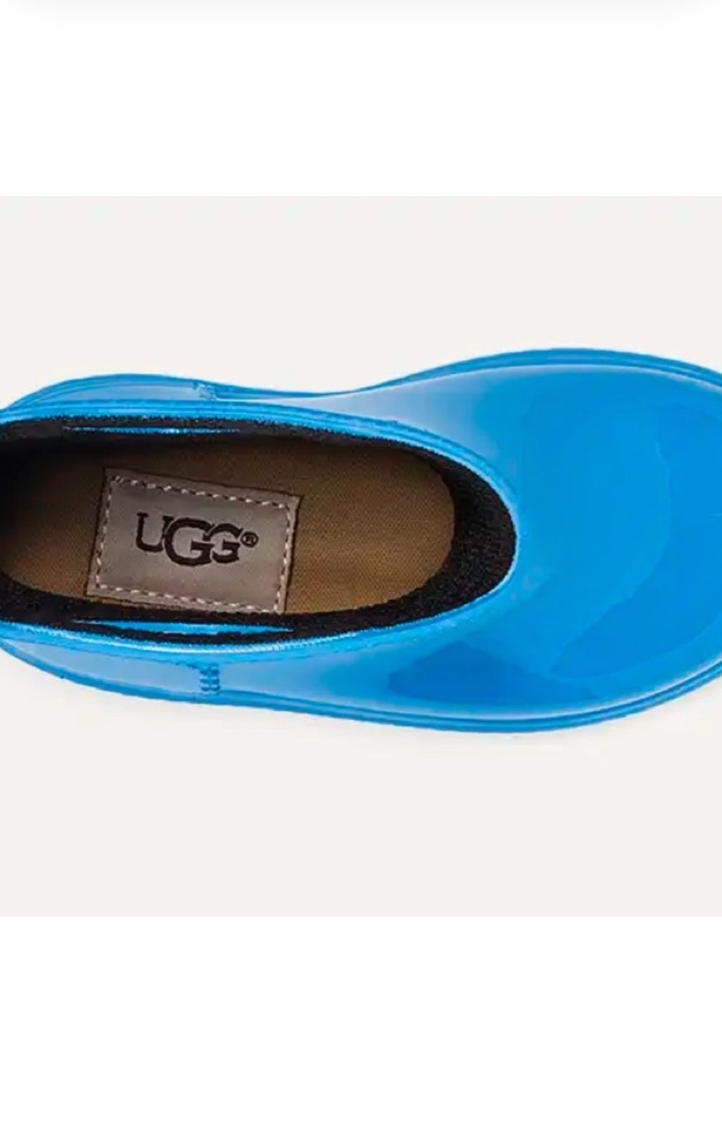 Step into comfort and style with the UGG Toddler RahJee Rain Boot, designed to keep your little one's feet dry and cozy. Crafted with high-quality jersey knit and featuring a versatile blue hue, these mid-calf rain boots are a practical choice for active toddlers. The easy pull-on design makes dressing quick and hassle-free, perfect for the bustling life of little adventurers. With a flat heel for steady footing and a comfortable fabric insole, these boots are made for walking and exploring. The waterproof construction ensures durability and ease of maintenance, while the standard shoe width accommodates growing feet. Whether it's a rainy day or a muddy playground, these UGG Classic rain boots are a reliable companion for your child's outdoor escapades. 5' Shaft.