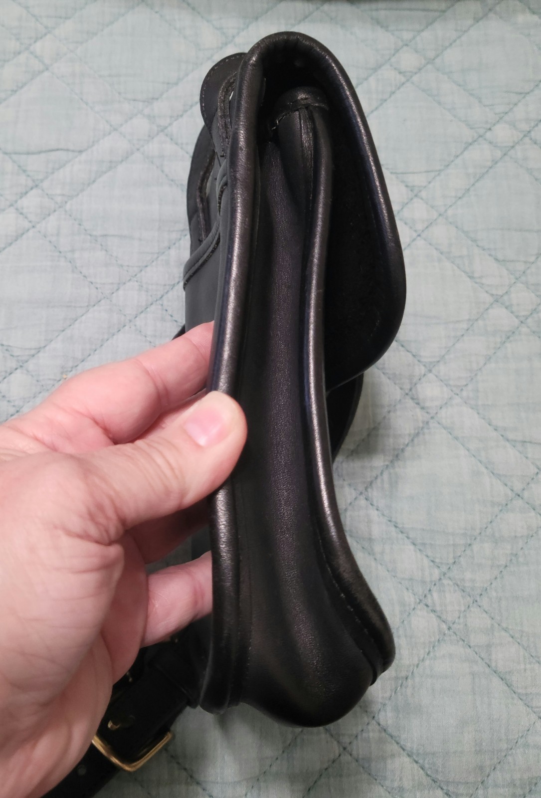 Black leather with brass hardware