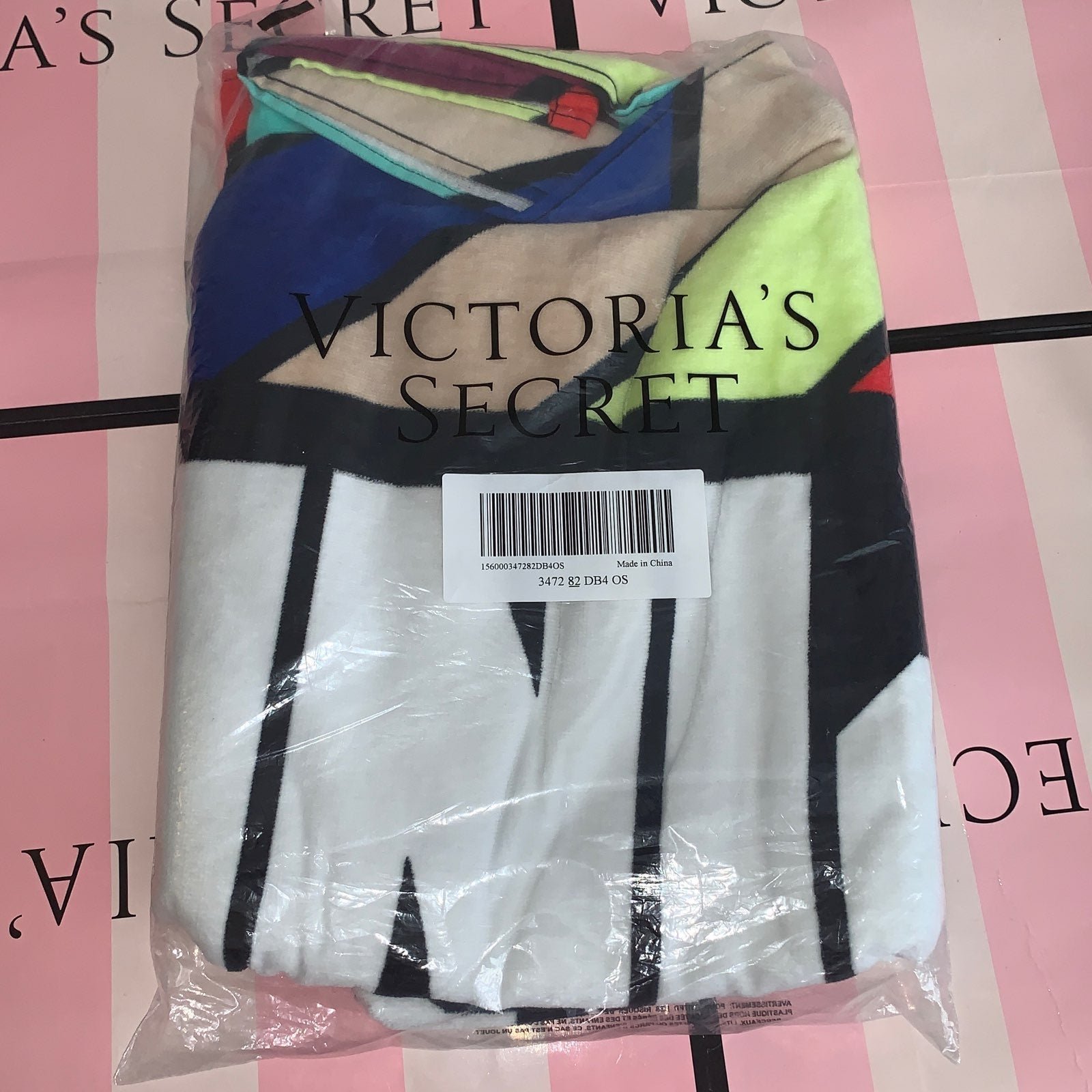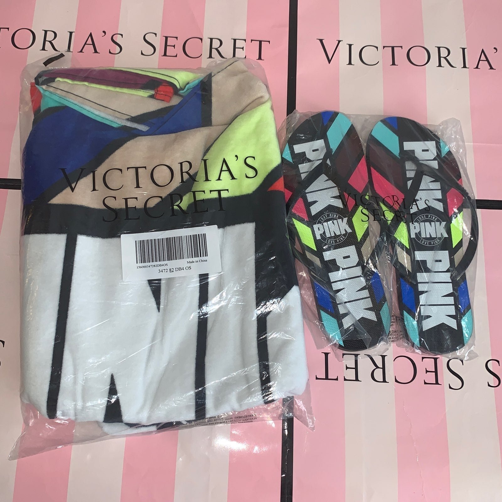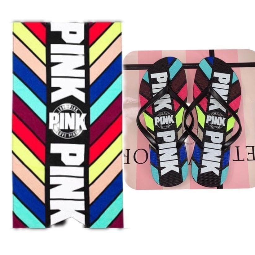 -VS PINK beach towel , approx 58” x 28” , Retro rainbow striped