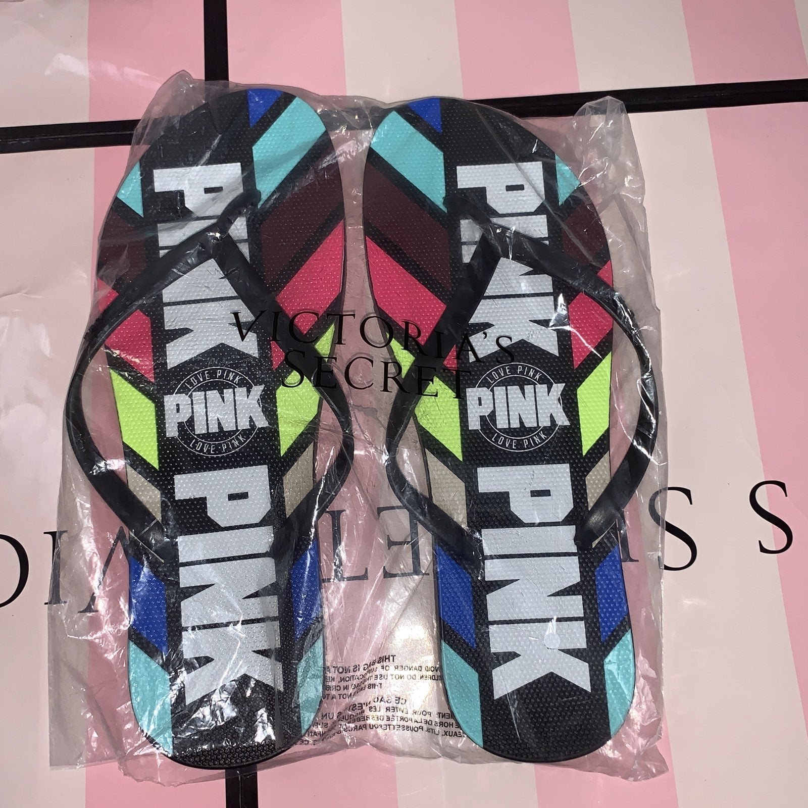 -VS PINK flip flops , size LARGE (fits 9-10), Retro rainbow stripes