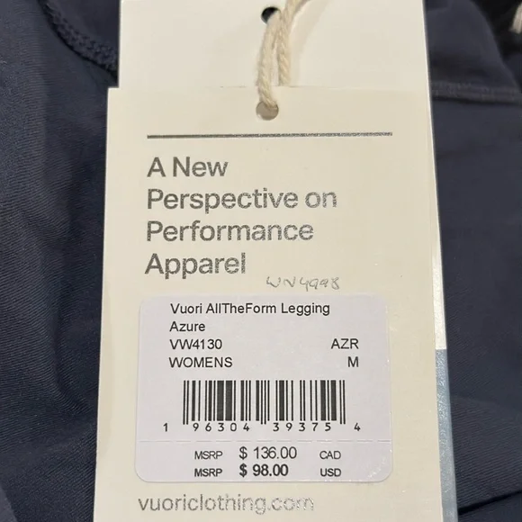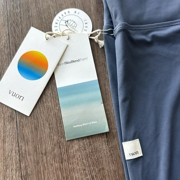 Say hello to our new Vuori BlissBlend Form™ fabric; it features all the softness of our fan-favorite buttery Vuori BlissBlend™ with enhanced compression for a held-in sensation that you're going to love. This 7/8 length legging features a high rise with a flattering v-shape waistband for maximum style points.4-Way StretchMoisture WickingVuori BlissBlend Form™ performance stretch knit fabricStretch to Fit; Form Fitting to the bodyHigh Rise, 7/8 Length25" InseamSlim FitRip tag on inside is missing see last photo