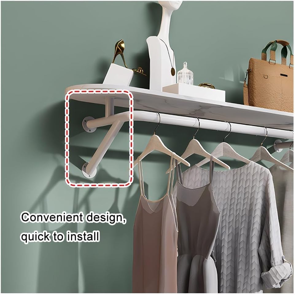 Are you looking for an effective solution to organize your clothing and accessories? Our wall-mounted clothes rack is designed to meet your needs! This versatile 2-in-1 garment rack features a sturdy shelf and a durable hanging rod, providing you with a convenient way to keep your space tidy and clutter-free. Perfect for various settings, including homes, clothing stores, supermarkets, balconies, hotels, and more, this stylish addition will enhance your organization efforts. **Product Specifications:** - **Product Name:** Floating Shelves - **Color Options:** Black, Gold, White - **Material:** High-quality Iron - **Style:** Modern and Fashionable - **Assembly:** Some assembly required **Key Features:** 1. **Space-Saving Design:** By mounting this rack on the wall, you maximize your floor space while adding valuable storage options. It’s an ideal choice for smaller rooms or busy retail environments. 2. **Quality Craftsmanship:** With neat welding points and a smooth surface finish, this clothes rack showcases excellent workmanship, ensuring durability and longevity for everyday use. 3. **Enhanced Stability:** The secure screw installation guarantees that the rack remains firmly in place, allowing you to use it with confidence and peace of mind. Transform your organization routine with our fashionable floating shelves, perfect for displaying and storing your garments in style. Elevate your space and simplify your life with this practical solution for all your clothing storage needs.