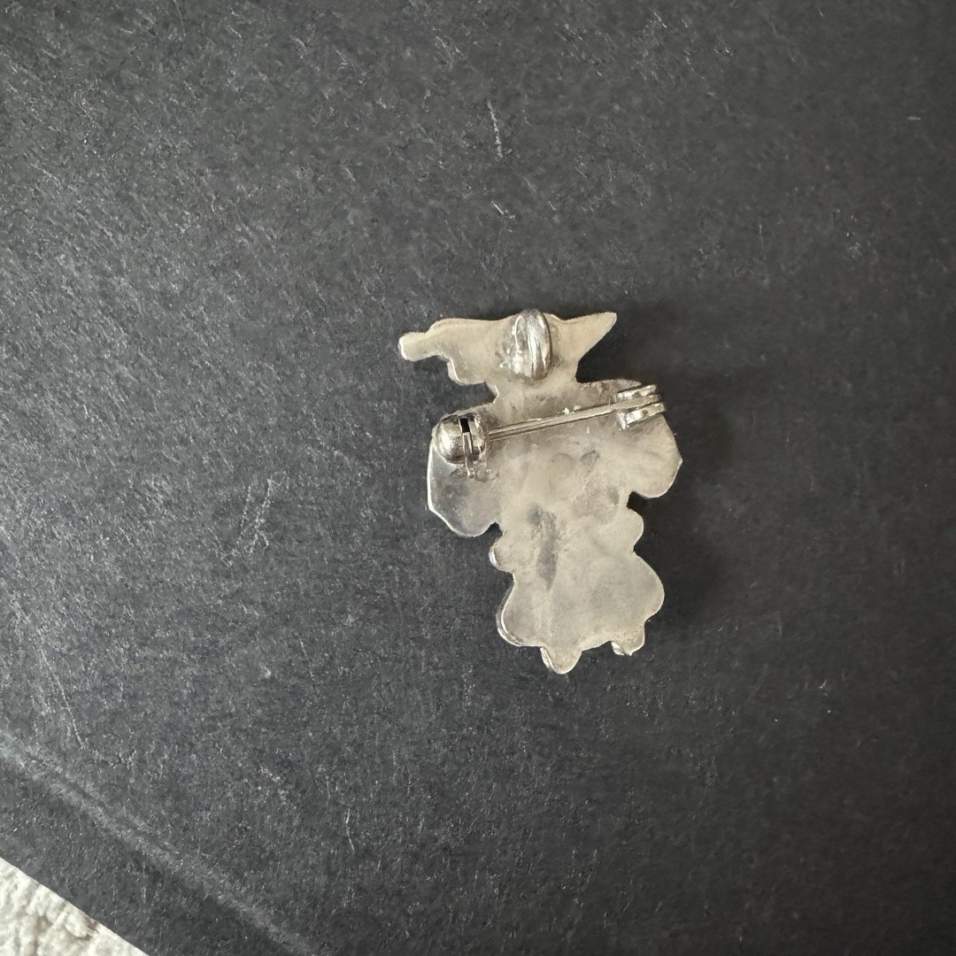The pendant can be worn as a brooch or it can be put on a chain to wear.
